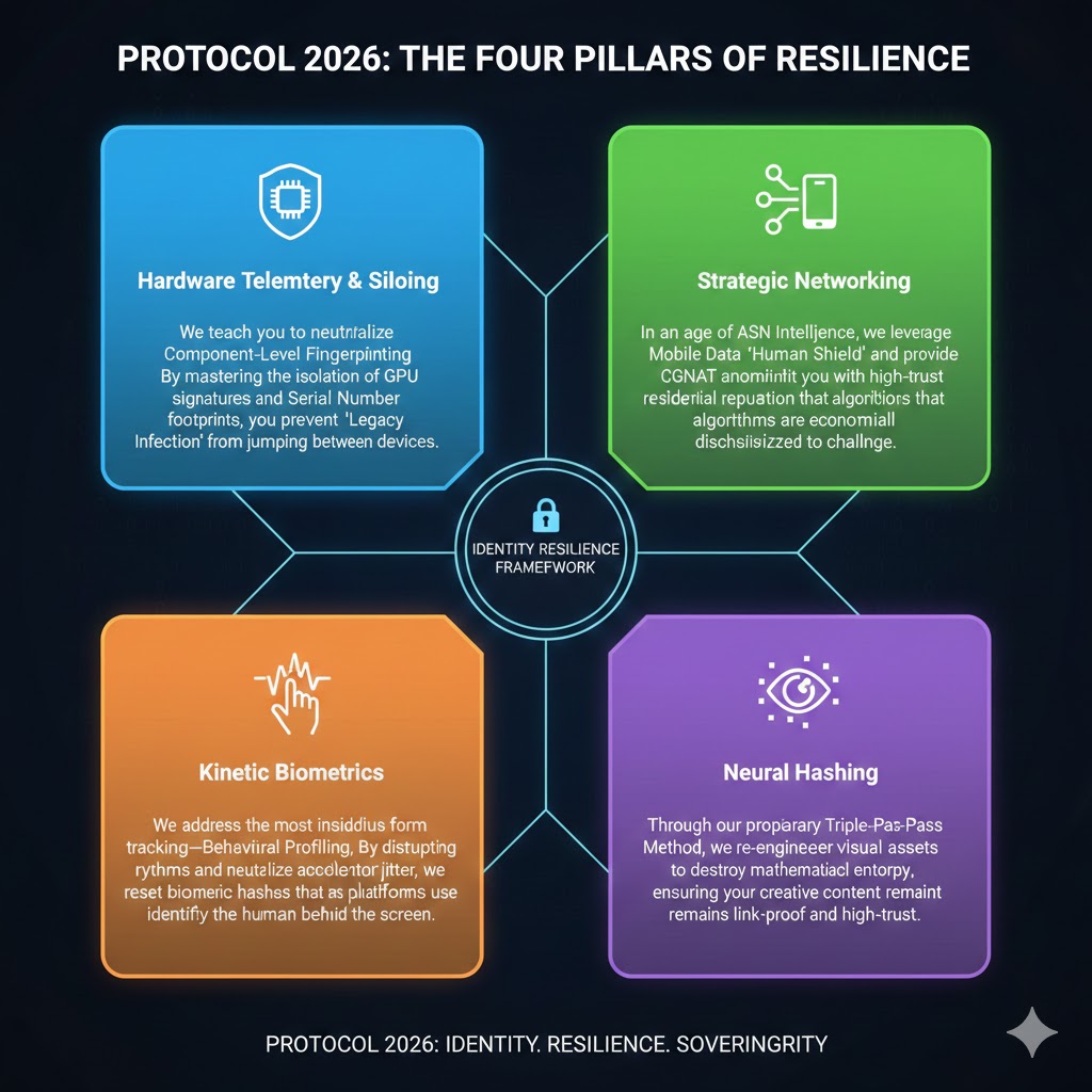 Protocol 2026 provides the blueprint for building a High-Trust Identity Resilience Framework. We move beyond the surface-level “hacks” of the past, focusing instead on the deep technical integration required to survive Retrospective Re-evaluation. If your digital architecture is not insulated from the hardware layer up, your commercial assets remain perpetually vulnerable to Identity Linkage—the silent “toxic” connection to legacy restricted footprints that can trigger platform-wide bans in milliseconds.